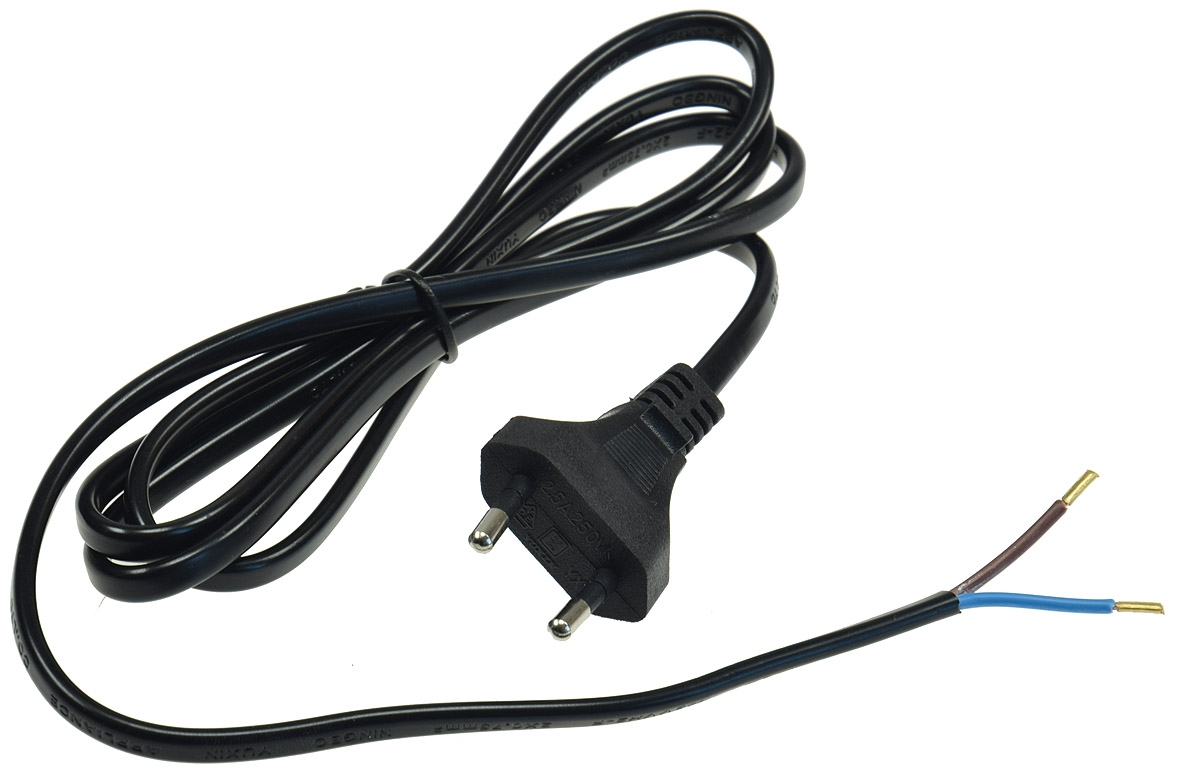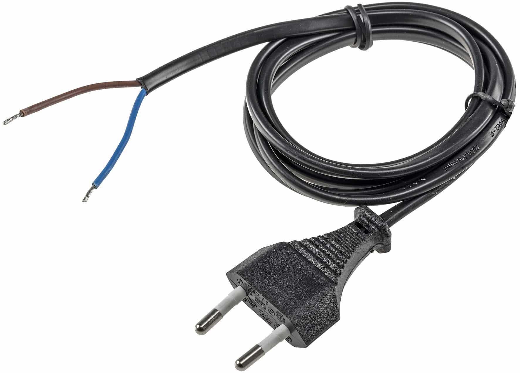 ChiliTec Netzkabel 18569 mit Euro Stecker, blankes Ende und 1,5m Kabel H03VVH2-F2 0,75 mm² mit 2,5A/250V Leistung und VDE Zeichen in schwarz. EAN 4250416320995