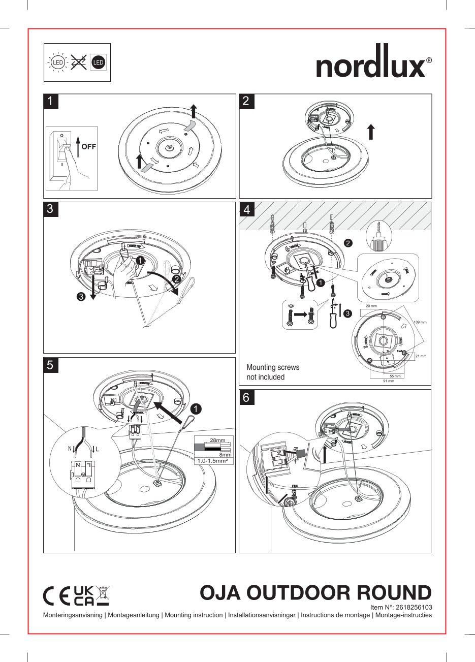 Angaben gem. Hersteller EU-Produktsicherheitsrichtlinie: Nordlux / DFTP, Nordlux Group A/S, consumer@nordlux.com, Ostre Havnegade 34, 9000 Aalborg, DK