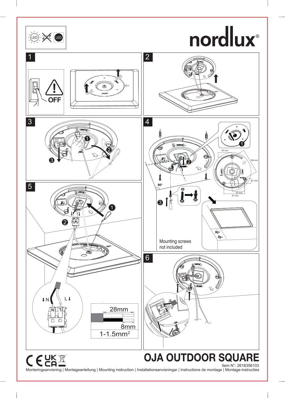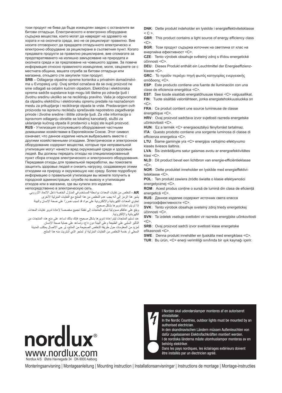 Angaben gem. Hersteller EU-Produktsicherheitsrichtlinie: Nordlux / DFTP, Nordlux Group A/S, consumer@nordlux.com, Ostre Havnegade 34, 9000 Aalborg, DK