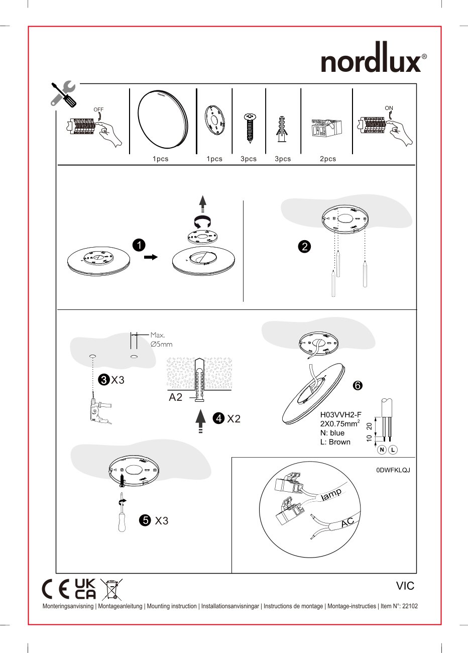 Angaben gem. Hersteller EU-Produktsicherheitsrichtlinie: Nordlux / DFTP, Nordlux Group A/S, consumer@nordlux.com, Ostre Havnegade 34, 9000 Aalborg, DK