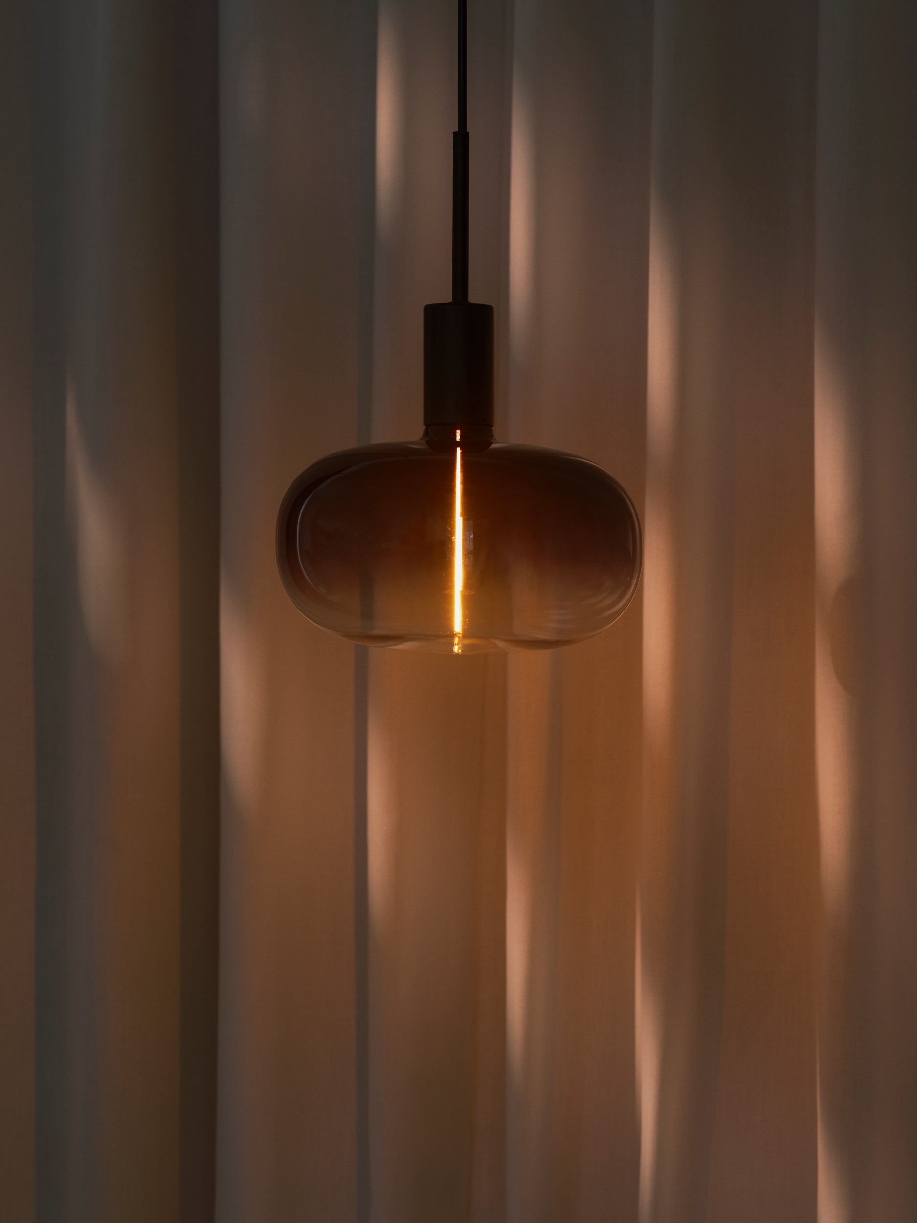 Extra großes (Ø 215 mm) dekoratives Nordlux 3,4W LED Leuchtmittel mit einem gemütlichen Licht - Deco E27 Beam 21 in rauchfarben leuchtet warmweiss mit 1800K und 60Lm Lichtstrom.