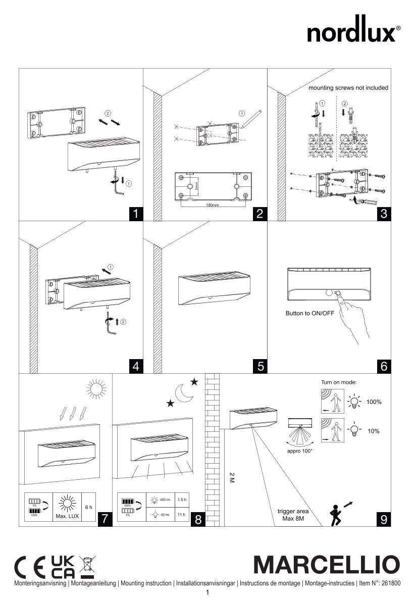 Lieferumfang : 1x Nordlux LED Solarleuchte Marcellio Solar Braun mit Bewegungsmelder 2618001018