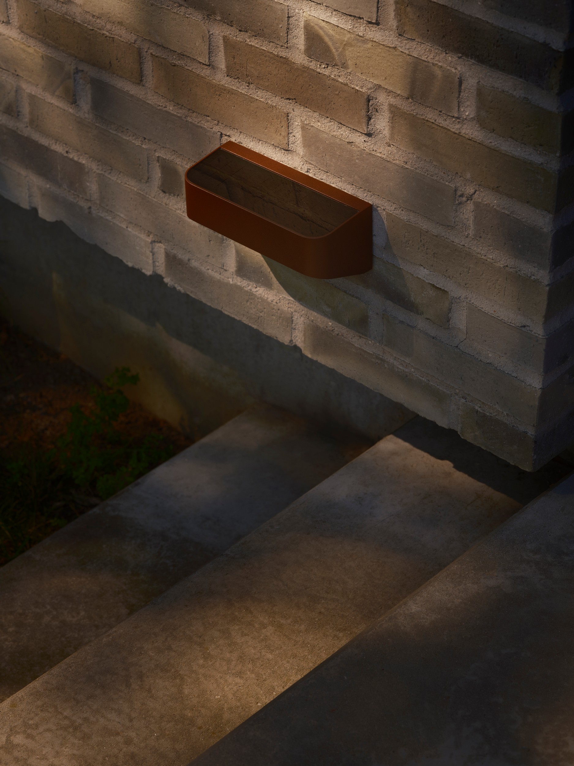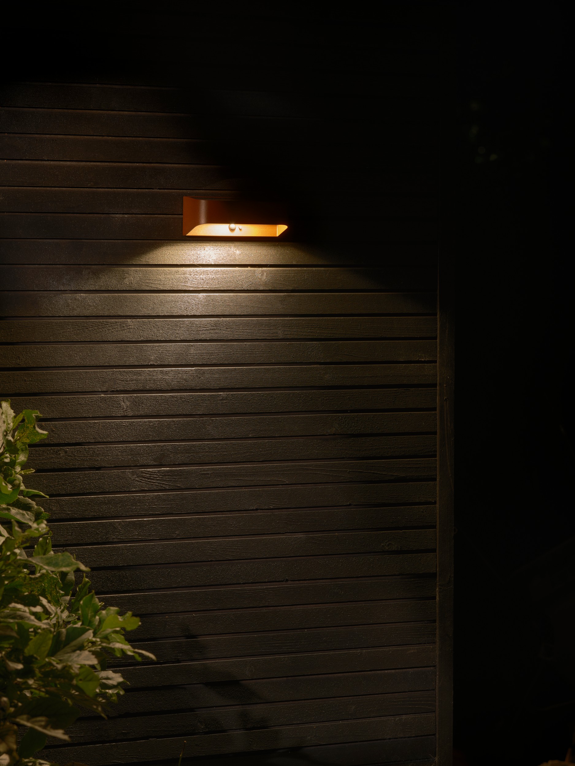 Moderne solarbetriebene LED Solarleuchte Marcellio Solar 2618001018 in Farbe Braun mit Bewegungssensor von Nordlux als Downlight - Wandleuchte mit einstellbarer Lichtstärke (40/400 Lumen) und IP54 Schutzart sowie Bewegungsmelder wird durch Sonnenlicht aufgeladen und ist einfach und ohne Kabel zu montieren und als Fassadenleuchte bestens geeignet.