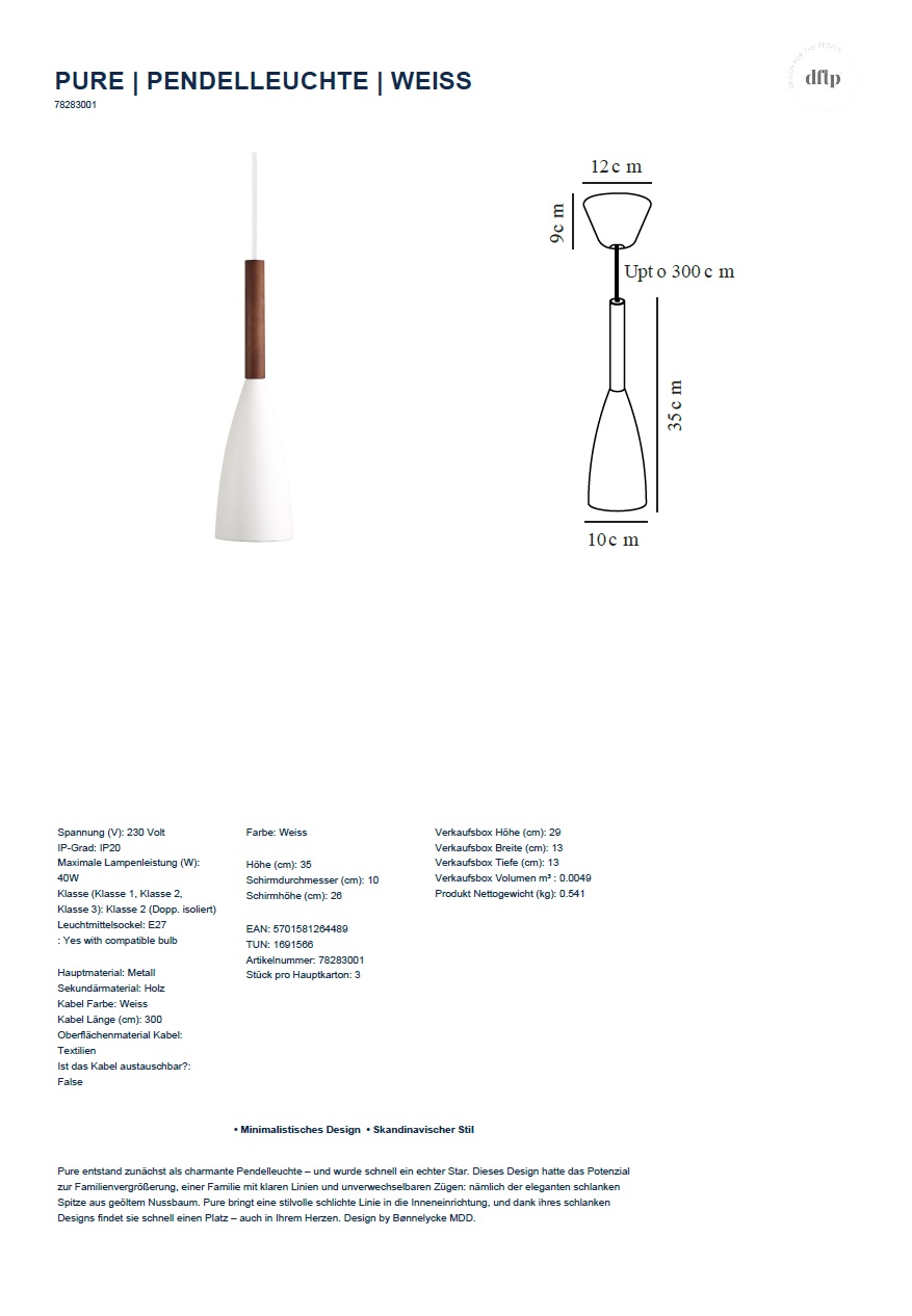 Lieferumfang : 1x Pendelleuchte Pure, weiß, ohne Leuchtmittel
