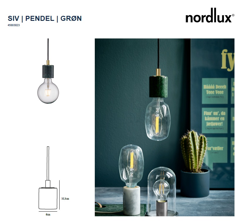 Elegante Pendelleuchte SIV von Nordlux in coolem grün. Moderner Pendel in Marmoroptik, Pendellampe mit E27 Fassung.