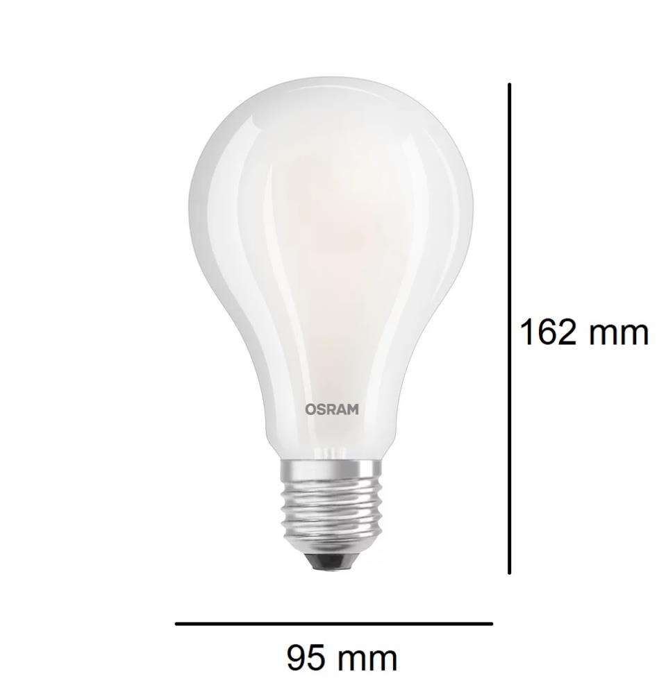 Energieeffiziente und super helle Osram LED Lampe 4058075619098 mit E27 Fassung in A95 Bauform (162 mm x Ø95 mm) und 24W Leistung leuchtet mit 3452 Lumen, hell wie ca. 200W Glühlampe, in 4000K neutralweiss und 320° Abstrahlungswinkel.