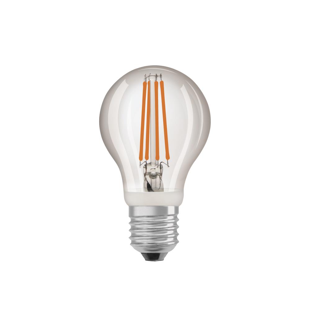 Effiziente helle Osram STAR MOTION SENSOR LED Lampe (EAN 4058075762039) mit Microwave sensor, FILAMENT LEDs, E27 Fassung und 7,3W Leistung leuchtet mit 806 Lumen Lichtstrom in 2700K warmweiss und ersetzt eine 60W Glühlampe.