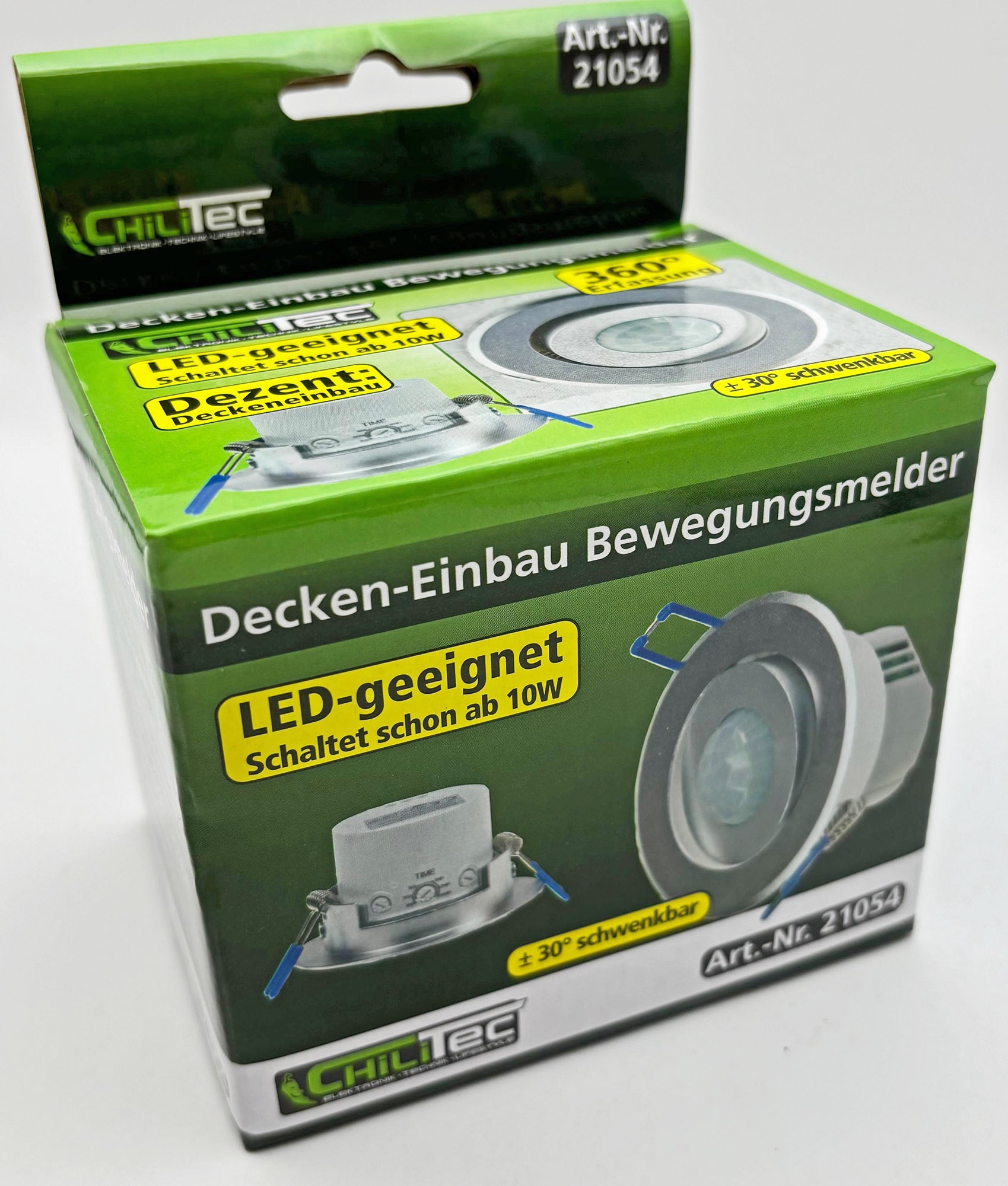 Bewegungsmelder nach IP20 Schutzart für den Einbau - Chilitec Bewegungssensor Art.-Nr. 21054 mit 360° Erfassungswinkel in Farbe weiß ist für 3-Draht Technik sowie zum Deckeneinbau bestens geeignet.