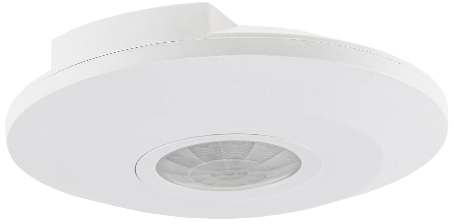 Decken Bewegungsmelder nach IP20 Schutzart Chilitec Bewegungsmelder Art.-Nr. 21679 mit 360° Erfassungswinkel in Farbe weiß ist für 3-Draht Technik erfasst Bewegungen in 6 Meter Reichweite, ideal fürs Treppenhaus oder Flur.