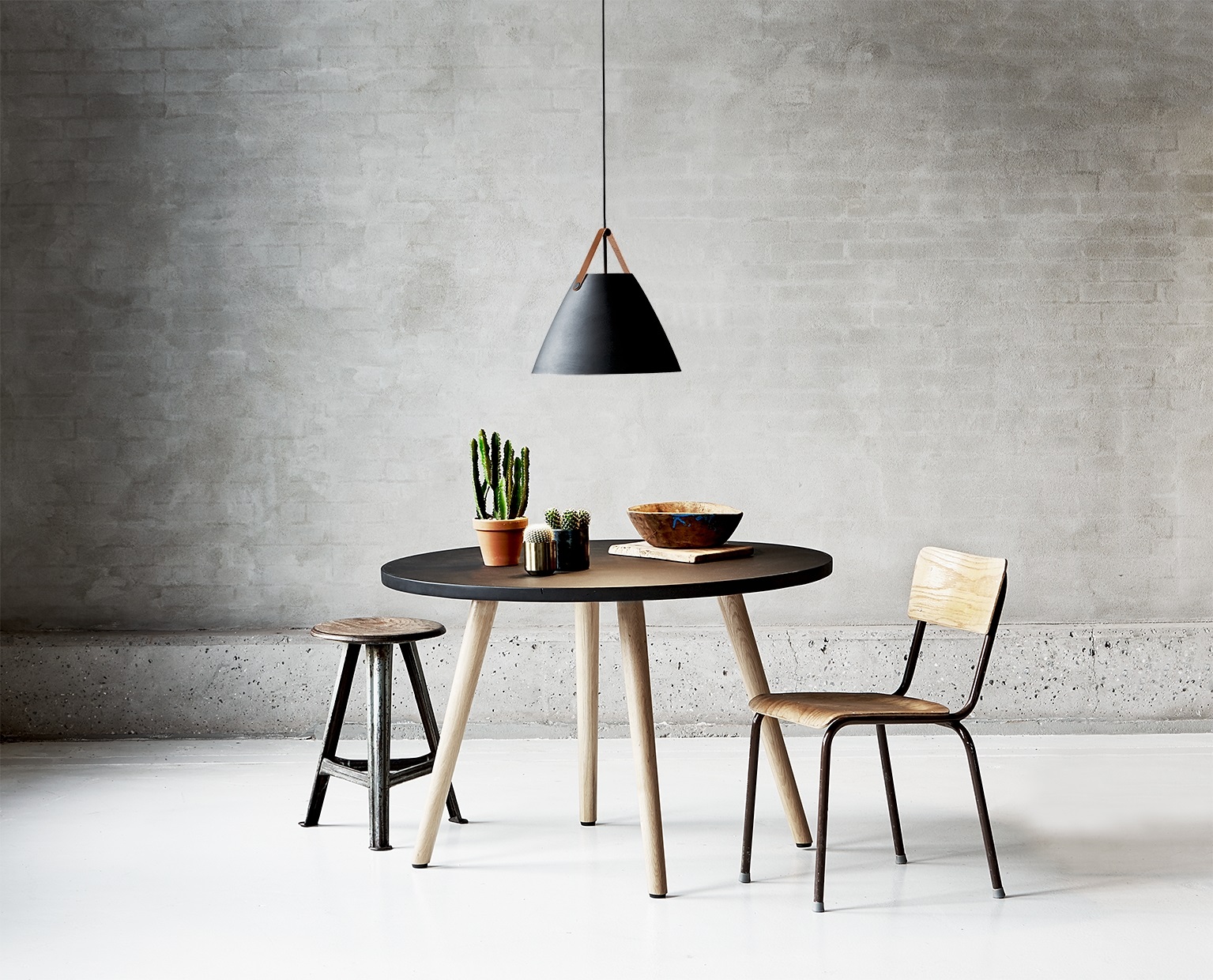 Pendelleuchte 84343003 Strap 36 mit industriellem Look und skandinavischem Stil aus Metall und echtem Leder von Nordlux aus der Design for the People Serie in Farbe Schwarz mit Fassung E27.