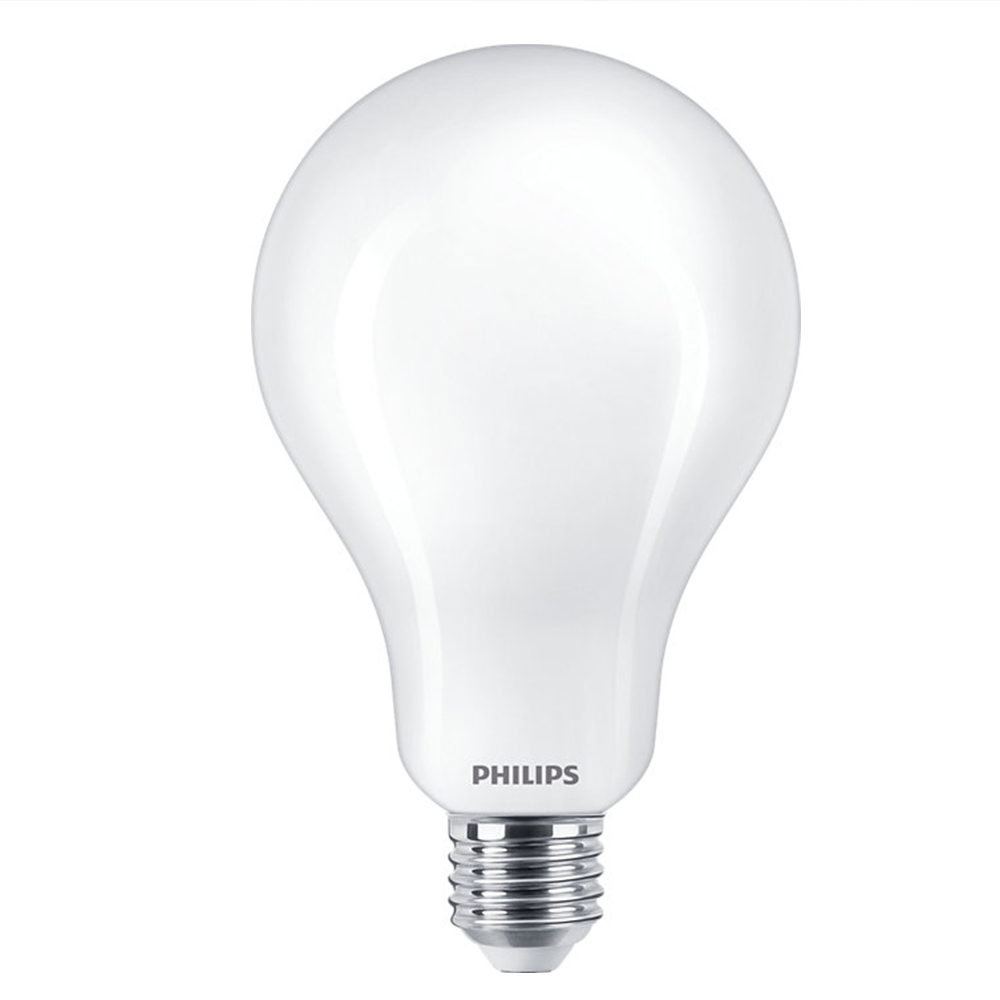 Energieeffiziente und super helle Philips LED Lampe in Matt mit E27 Fassung und 23W Nennleistung in A95 Bauform (165 mm x Ø95 mm) leuchtet mit 3452 Lumen Lichtstrom in 6500K kaltweiss und ersetzt eine herkömmliche 200W Glühlampe.