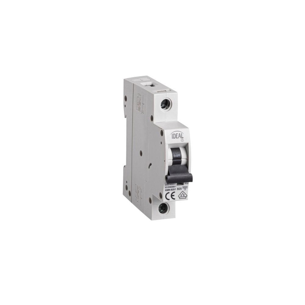 20A Sicherung und Leitungsschutzschalter KMB6 B20 1P 20A von Ideal by Kanlux ist für die Elektro Installation in Verteilerbox als Sicherungsautomat geeignet.