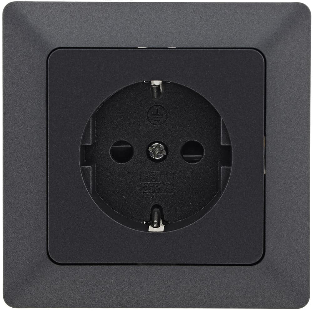 MILOS Steckdose 23745 in Farbe Anthrazit von ChiliTec mit Rahmen Schutzkontakt Klemmanschluss für Unterputz Montage.