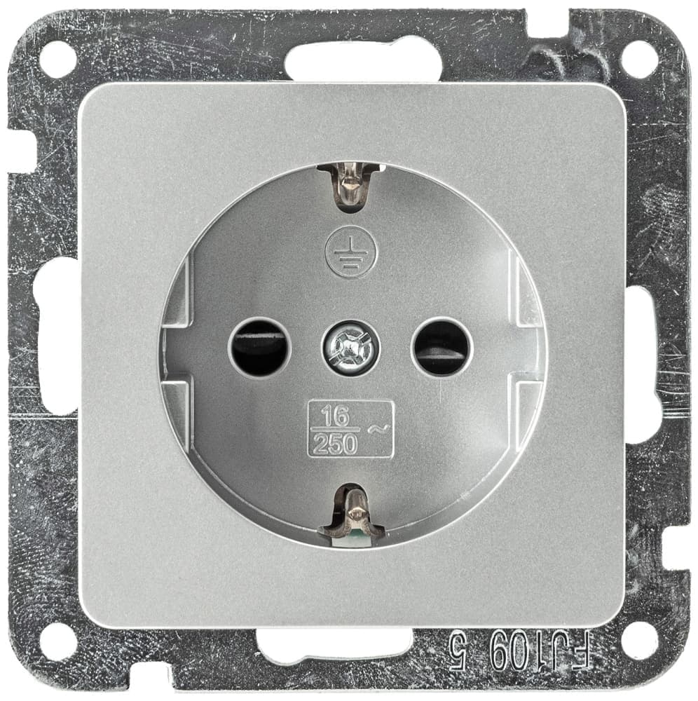 Schutzkontaktsteckdose 23034 aus der Schalterserie DELPHI - Steckdose mit Schutzkontakt, Unterputz Montage, 16A Leisutng, Farbe silber, ohne Rahmen