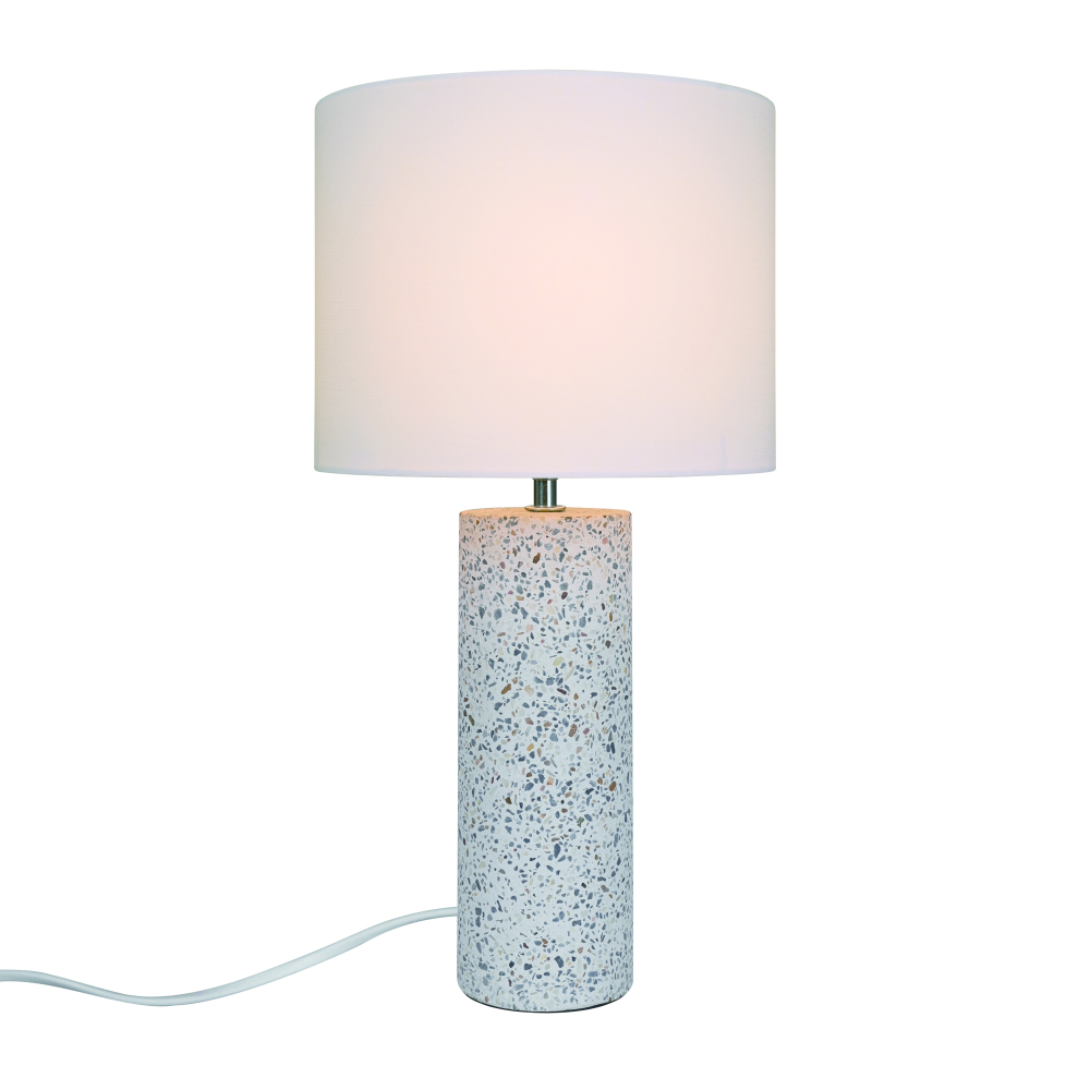 Elegante und moderne Tischleuchte Antiga, Art.-Nr. 2512625001 von Nordlux aus Terrazzo + Textilien strahlt weiches, diffuses Licht ab.