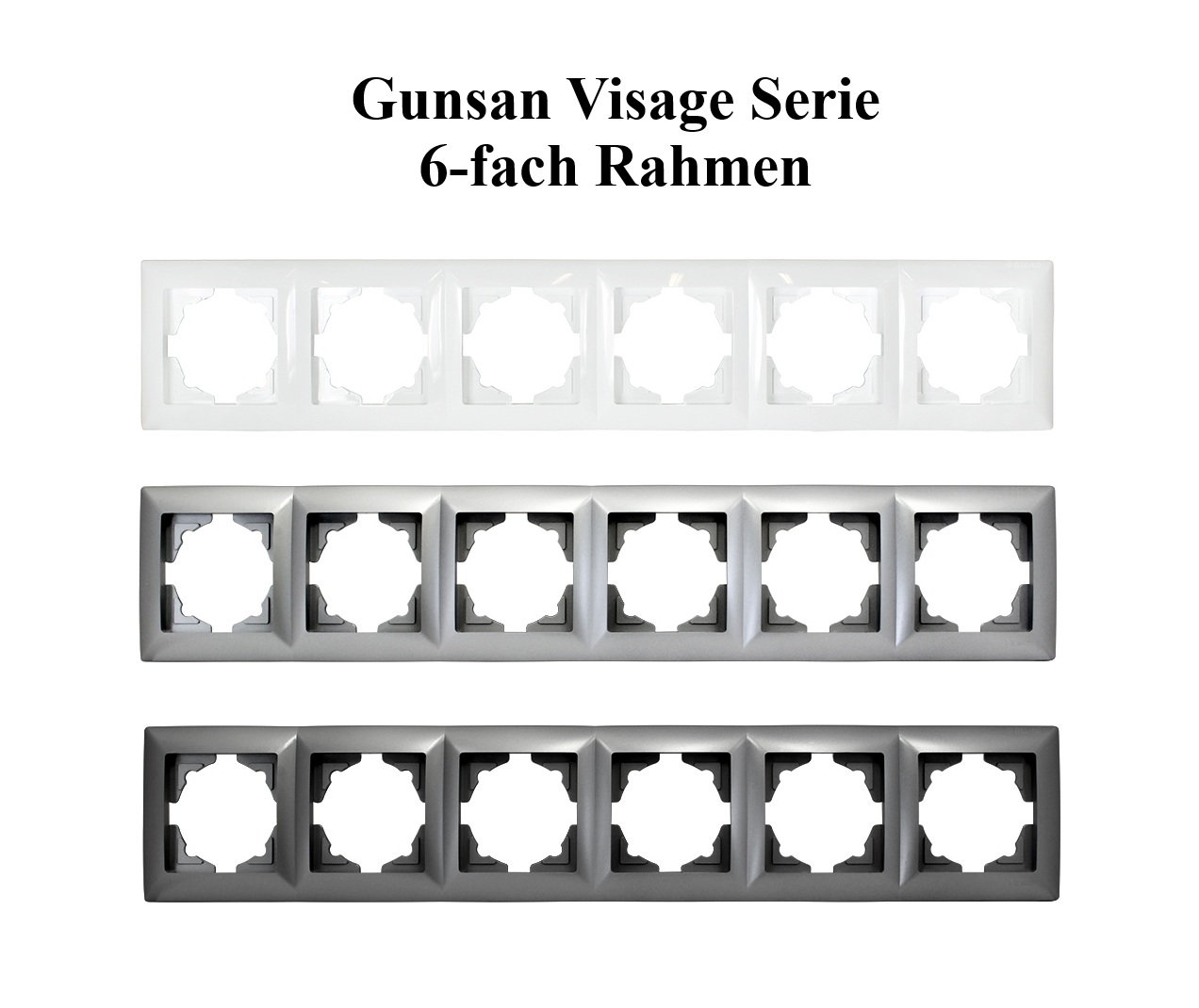 6-fach Rahmen aus der Visage Serie von Gunsan / günsan electric ist die ideale Steckdosenabdeckung in modernem Dunkelsilber für Dimmer, Schalter und Steckdosen.