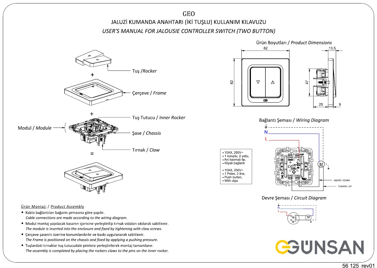 Einfache Kabelanschluss ohne Schrauben dank das eingebauten Steckklemmen-System - Gunsan 1281100200125 Rolladen Taster Visage Jalousietaster Rolladentaster für Unterputzmontage, Korpusfarbe Weiss, Leistung 16A