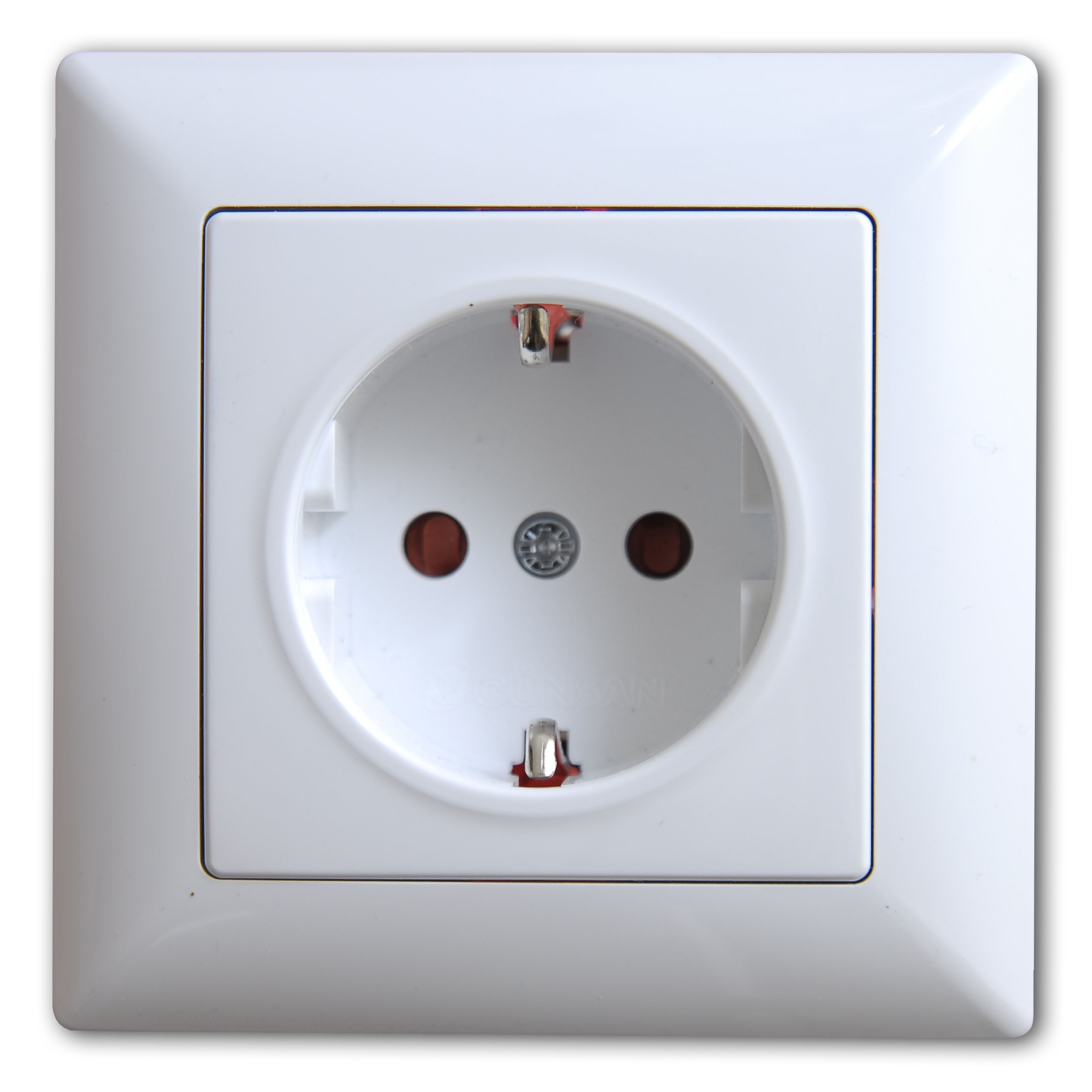 Gunsan steht für Schalterprogramme mit sehr gutem Preis-Leistungs-Verhältnis. Visage Steckdose mit erhöhtem Berührungsschutz in Weiss für die Unterputzmontage von Hersteller Gunsan.
