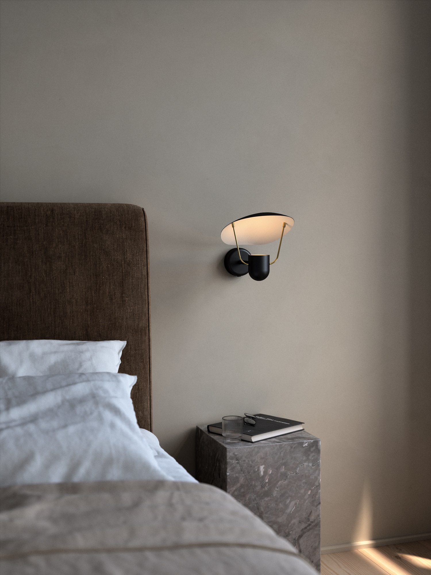 Moderner italienischer Stil - Wandleuchte Fabiola aus Design For The People by Nordlux 2220223003 mit GU10 Fassung in Farbe schwarz leuchtet mit einem weichem, indirektem Licht.